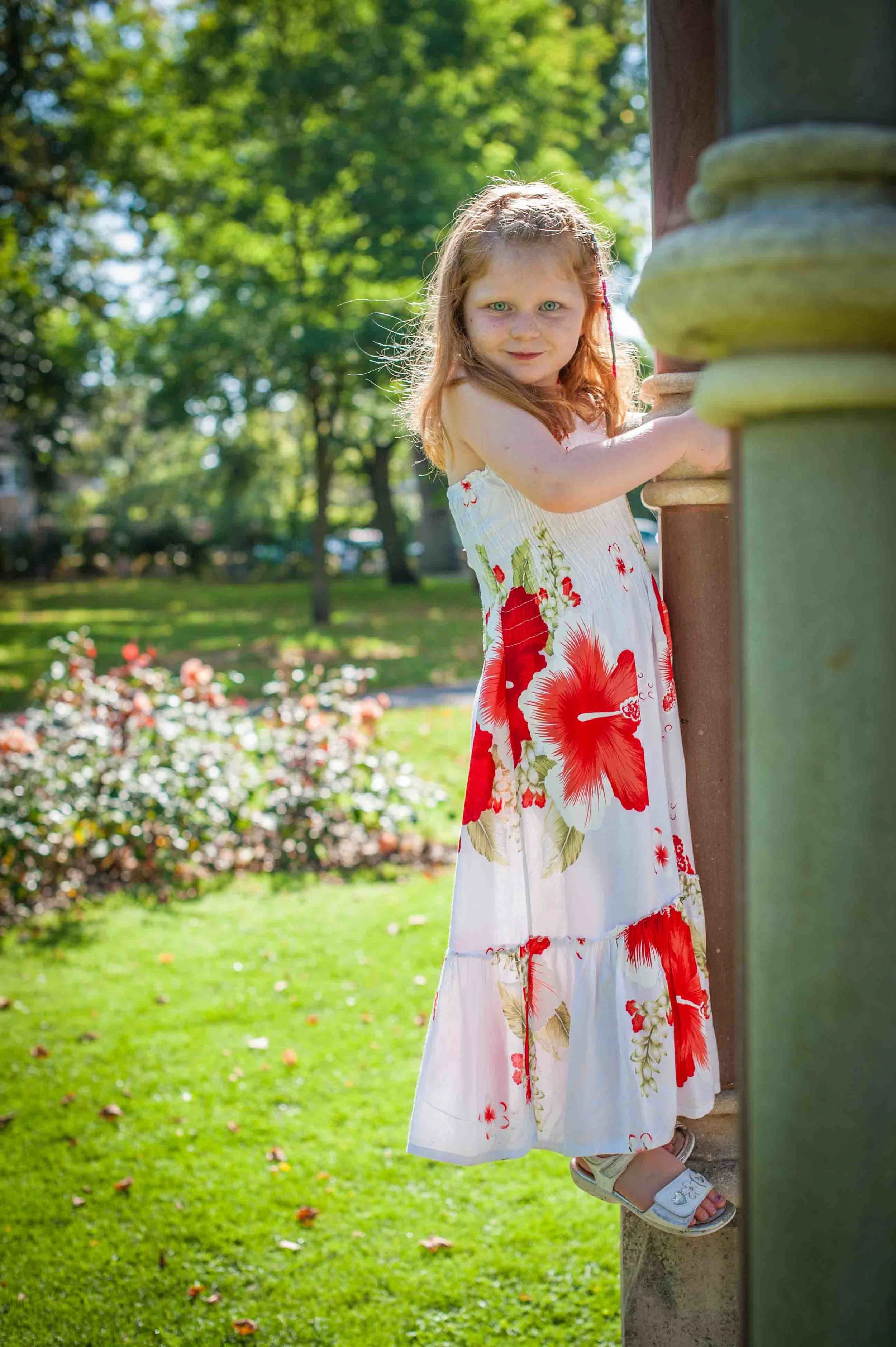 Rebekah and her family were on holiday from America and wanted some family photos of them while they were over here. They were staying near Sandford Park and liked the British feel of the fountain and grounds! I can’t believe it has been two years since my last photo shoot at Sandford. I’d forgotten just how great it is, with its quiet feel and beautiful flowers. The brief for their 30 minute shoot was mainly posed photos of different combinations of family members. We took a gentle stroll around the gardens, as I picked out suitable locations for photos.